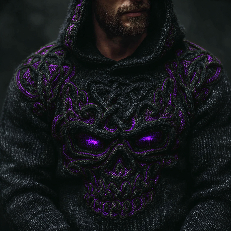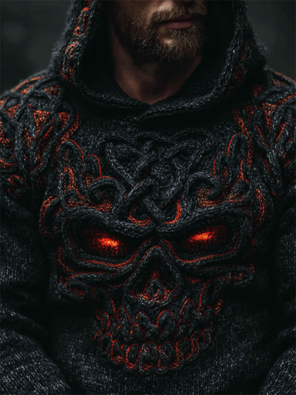 Men's Halloween Skull Celtic Knot Chunky Cozy Knit Hooded Sweater