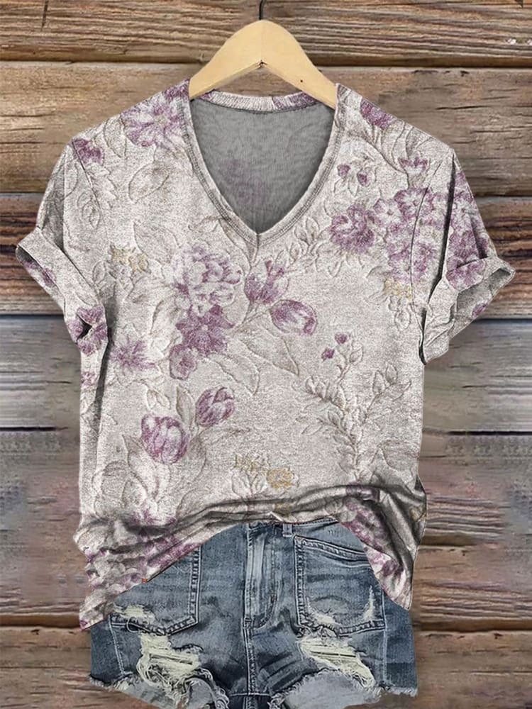 Retro Floral Print Casual T-shirt