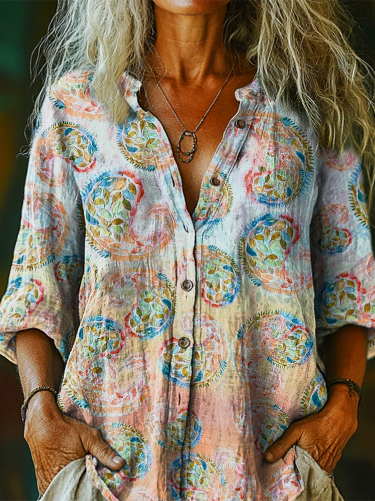 Women's Art Floral Hippie Vintage Print Long Sleeve Shirt