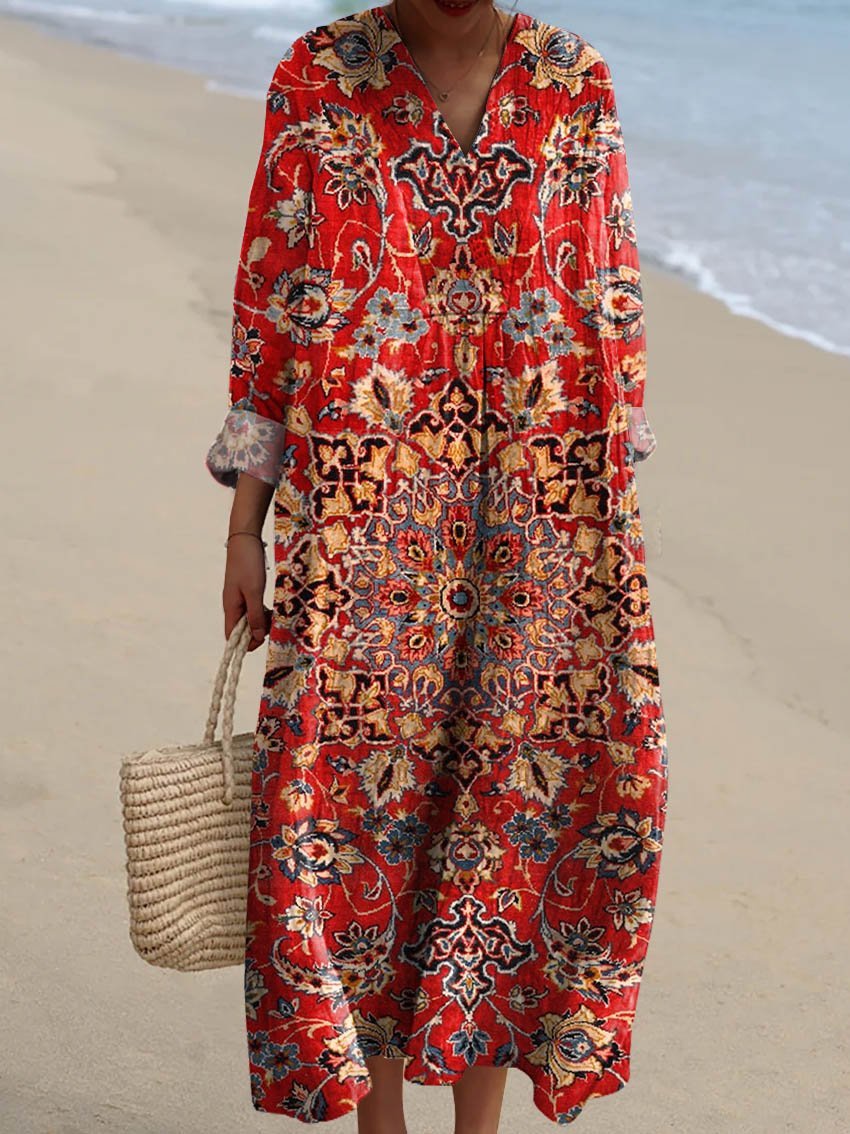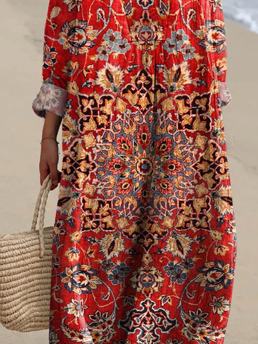 Women's Vintage Ethnic Floral Pattern Art Print Casual Dress