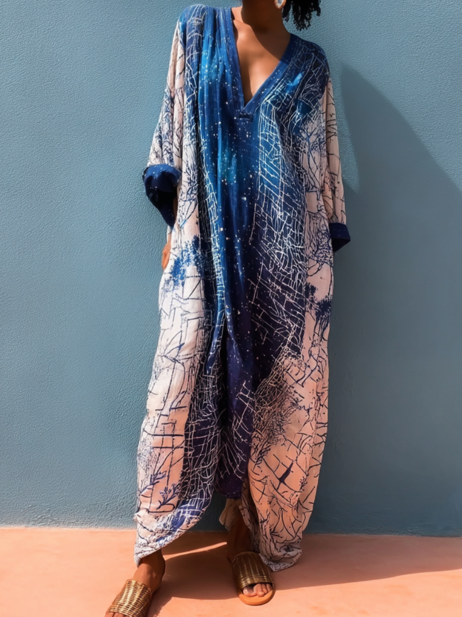 Aegean Mist Linen V-Neck Kaftan