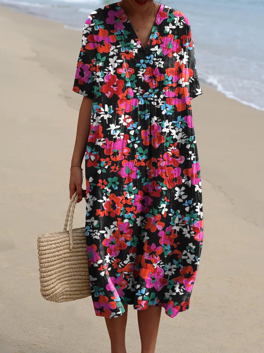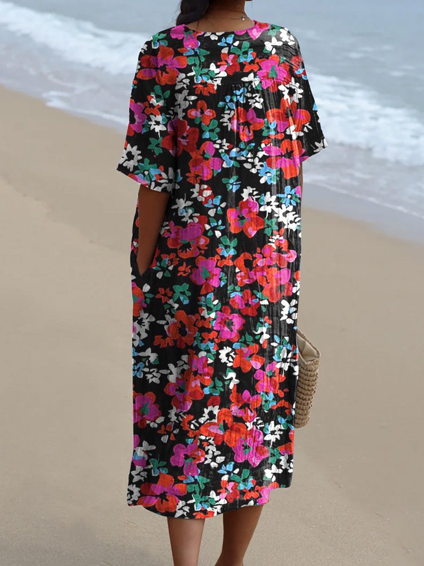 Bright Summer Floral Pattern Printed Women's Flowy Dress