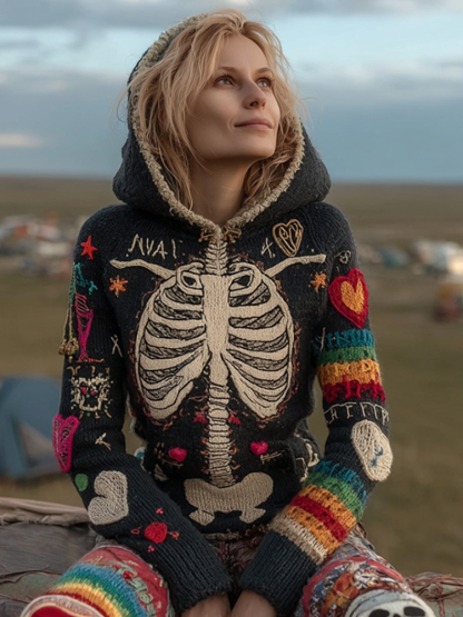 Halloween Skeleton Pattern Women's Knit Hooded Sweater