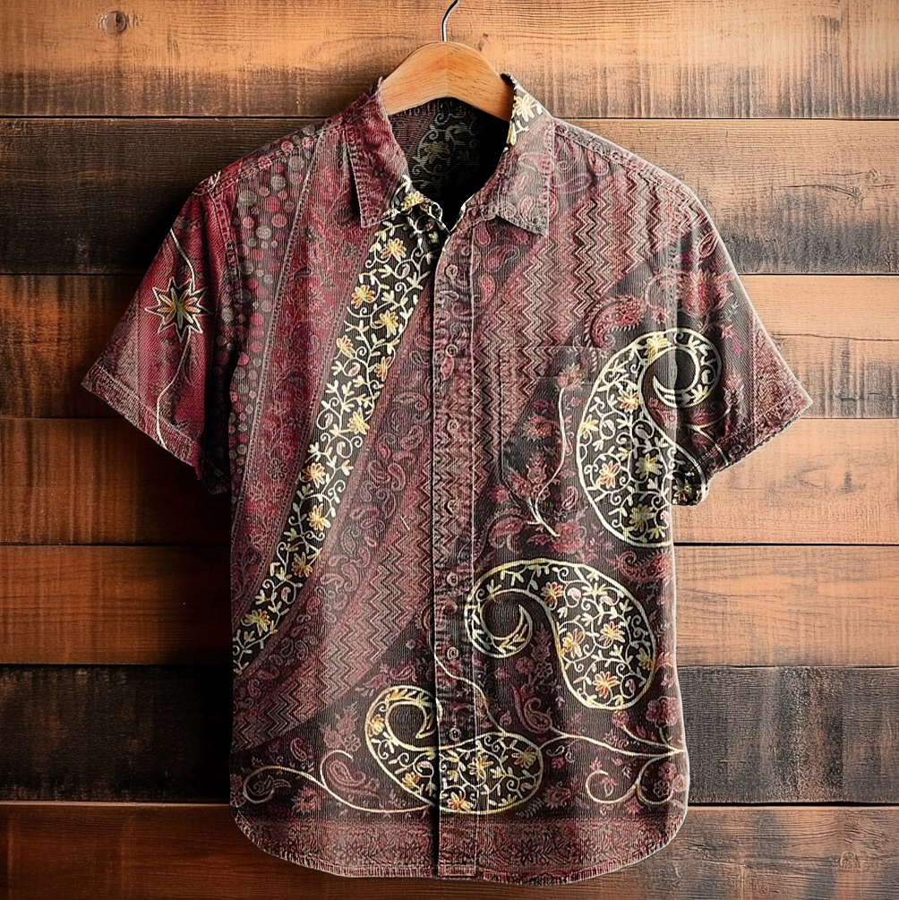 Men's Art Painting Ethnic Floral Vintage Print Lapel Shirt