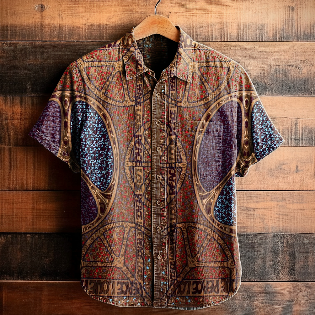 Men's Art Painting Hippie Retro Print Lapel Shirt