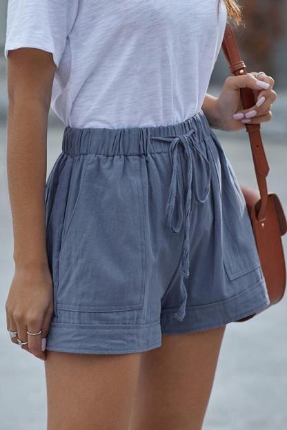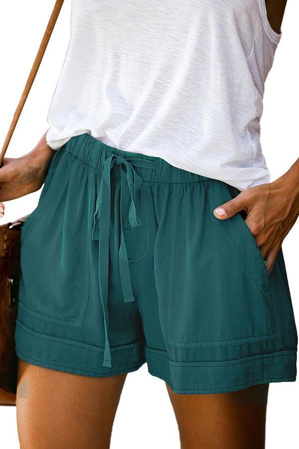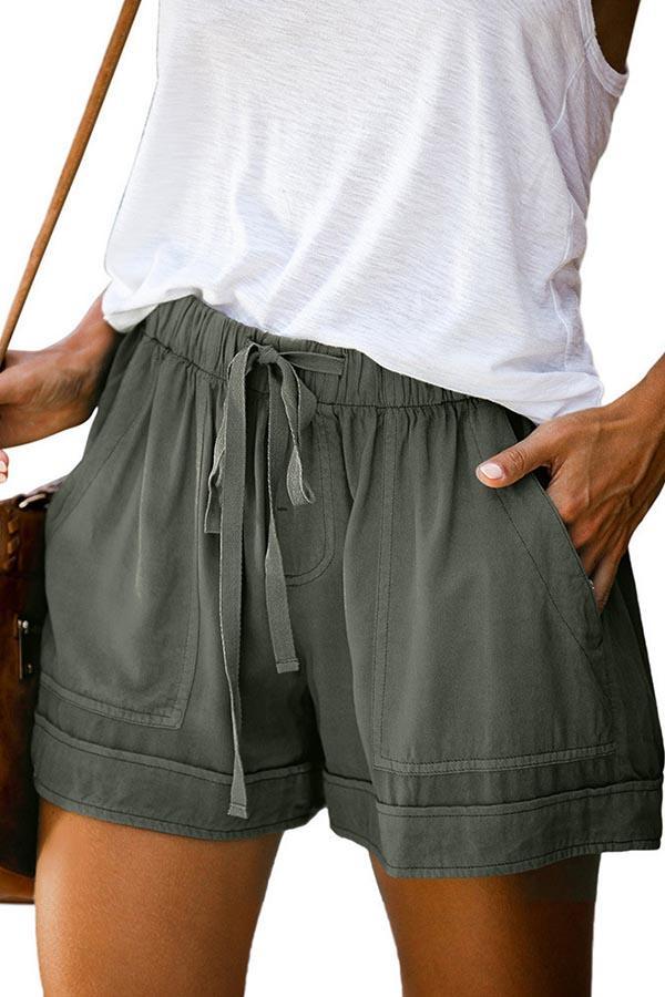 Paneled Solid Side Pockets Self-tie Casual Pants