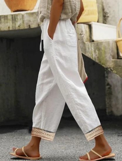 Solid Lace Panel Drawstring Pants