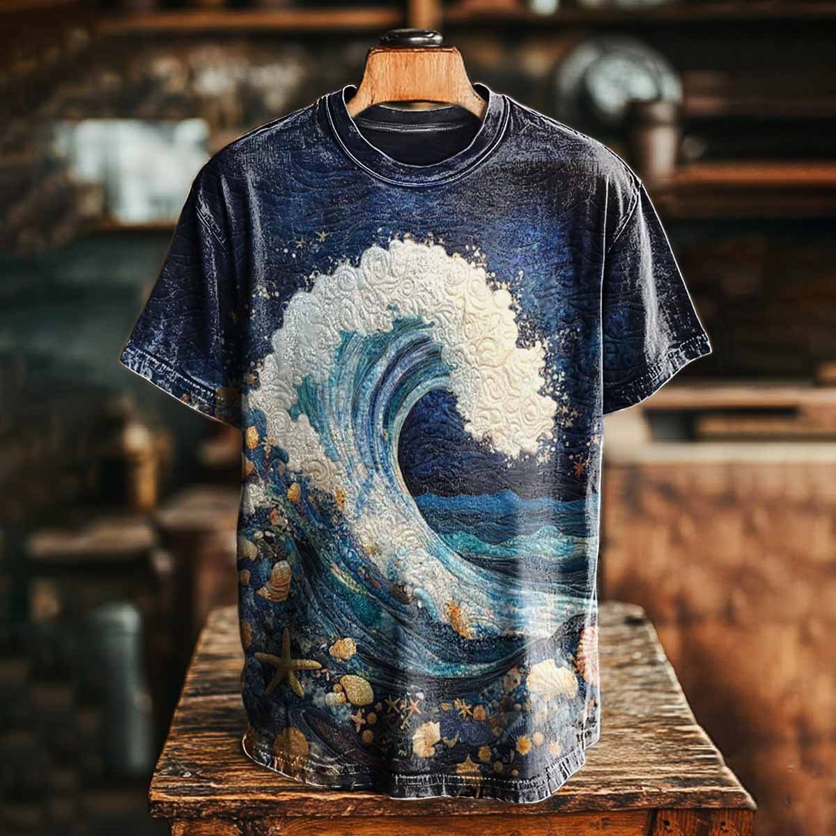 Unisex Tropical Wave Art Print Casual Loose Short Sleeve T-Shirt