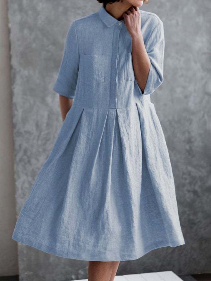 Women‘s Casual Elegant Double Pockets Half-Sleeve Dress
