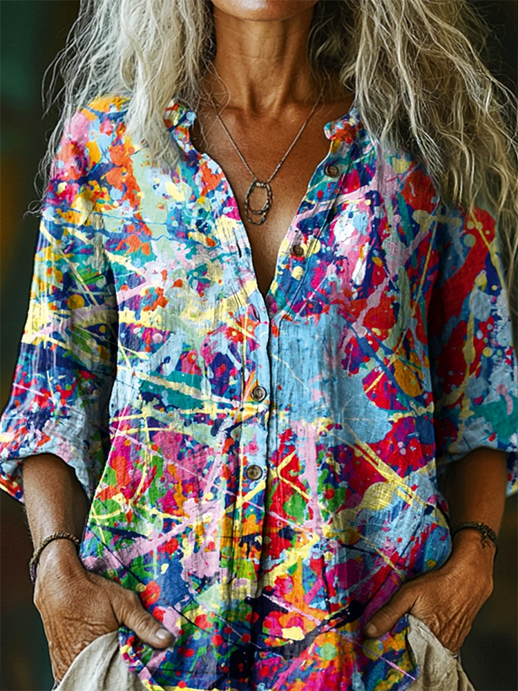 Women's Colorful Pattern Art Print Casual Cotton Linen Shirt