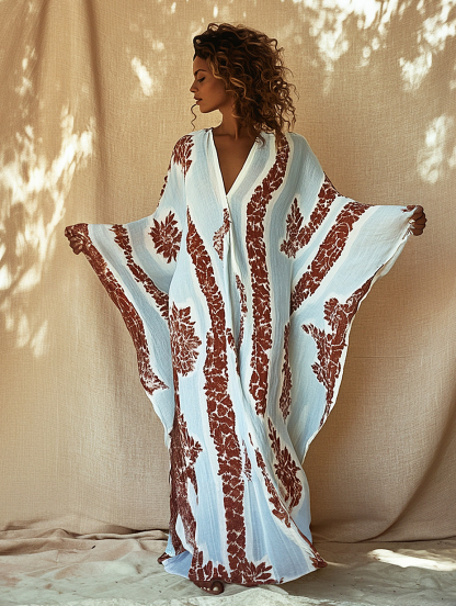 Women's Ethnic Symphony Art Flower Linen V-Neck Long Gown