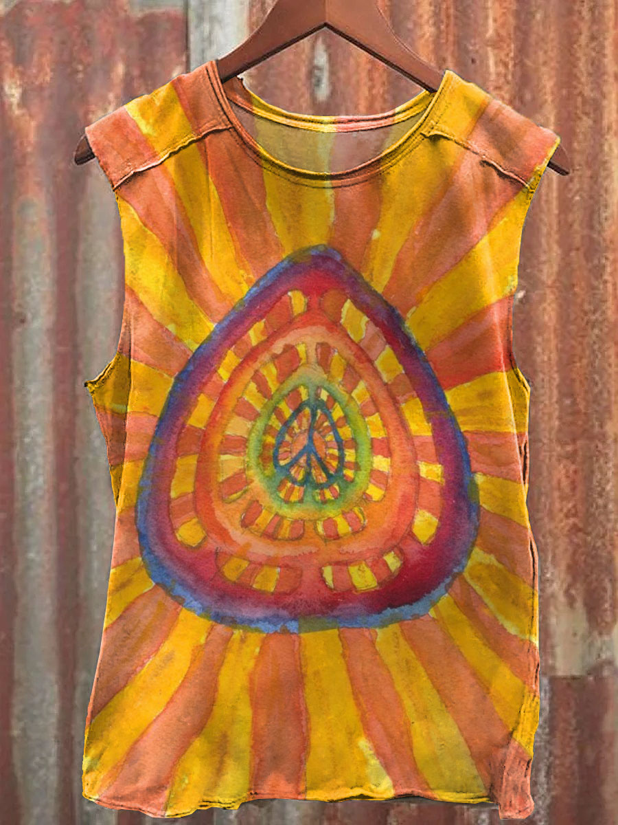 Hippie Heart Art Print 100% Cotton Casual Tank Top