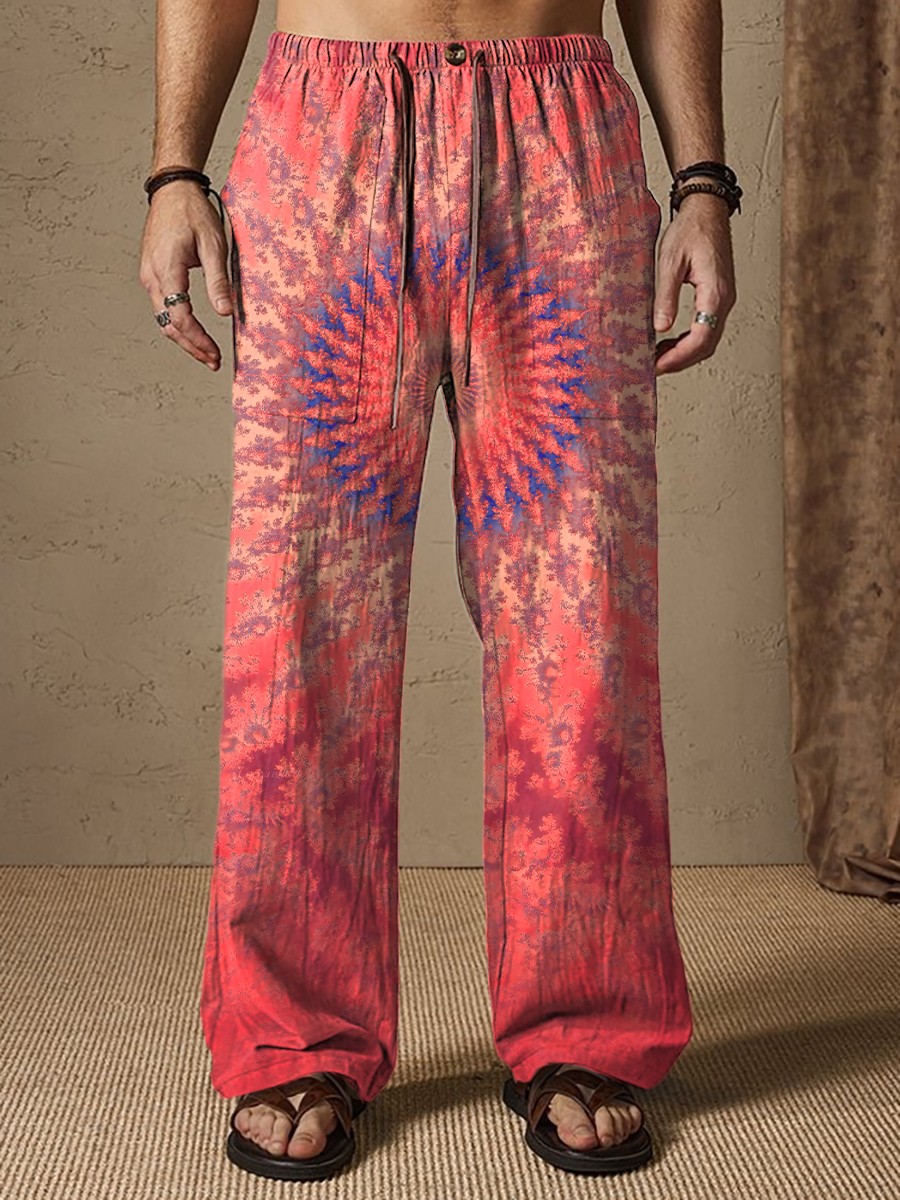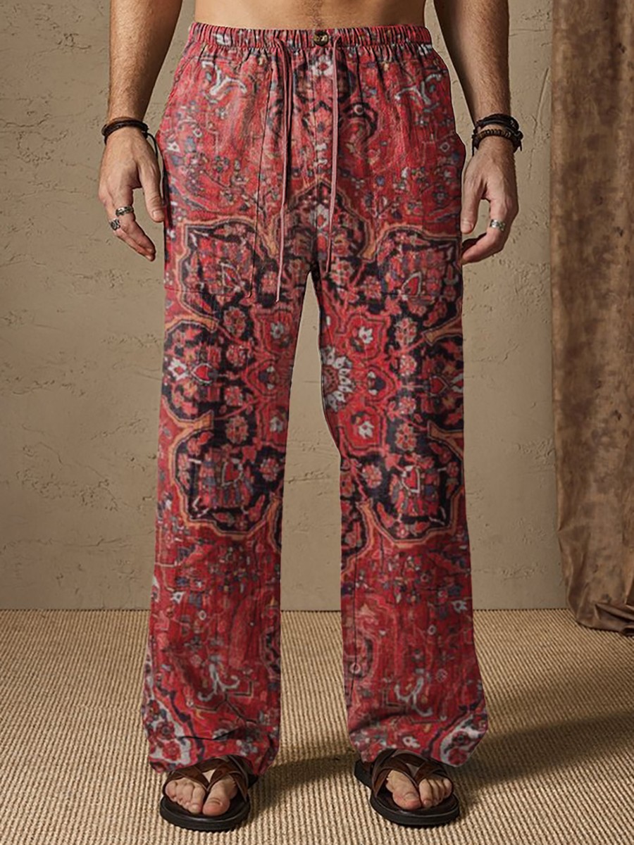 Men's Retro Ethnic Floral Abstract Patterns Comfy 100% Cotton Pants
