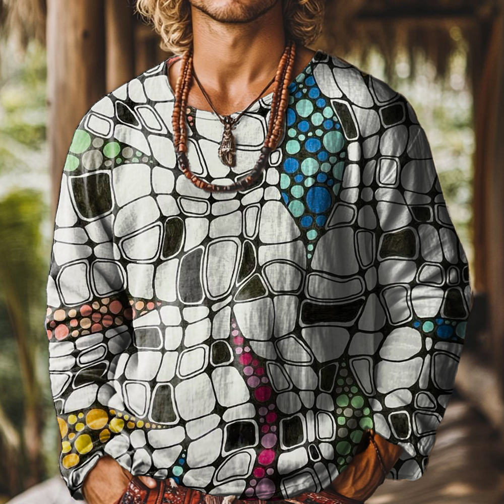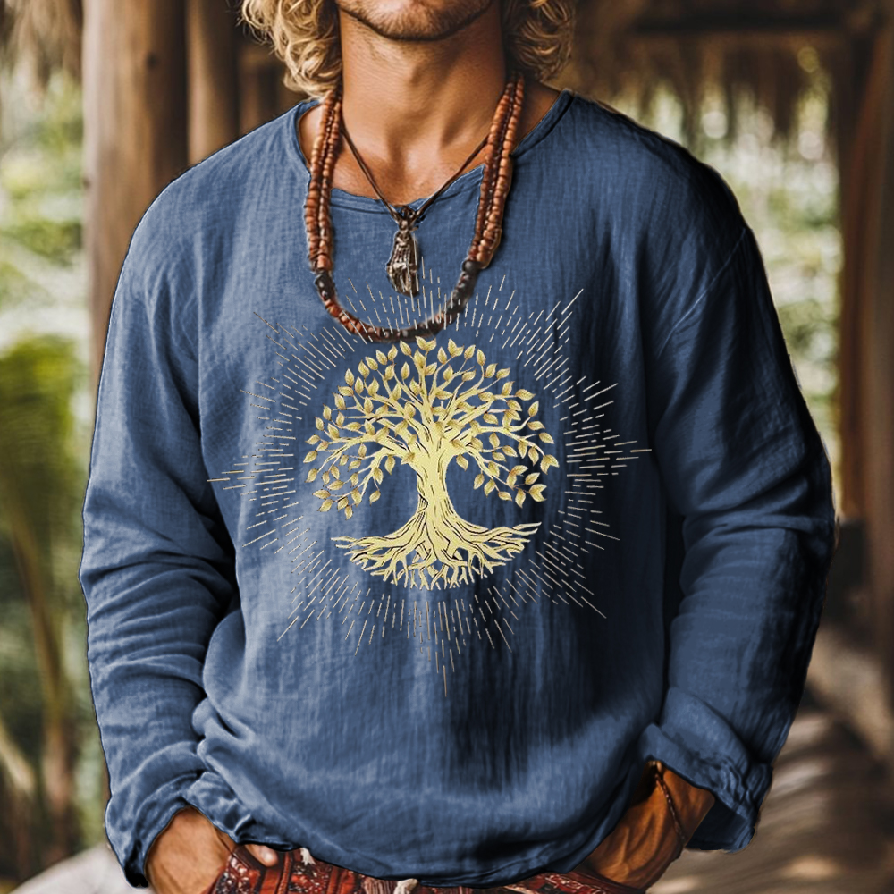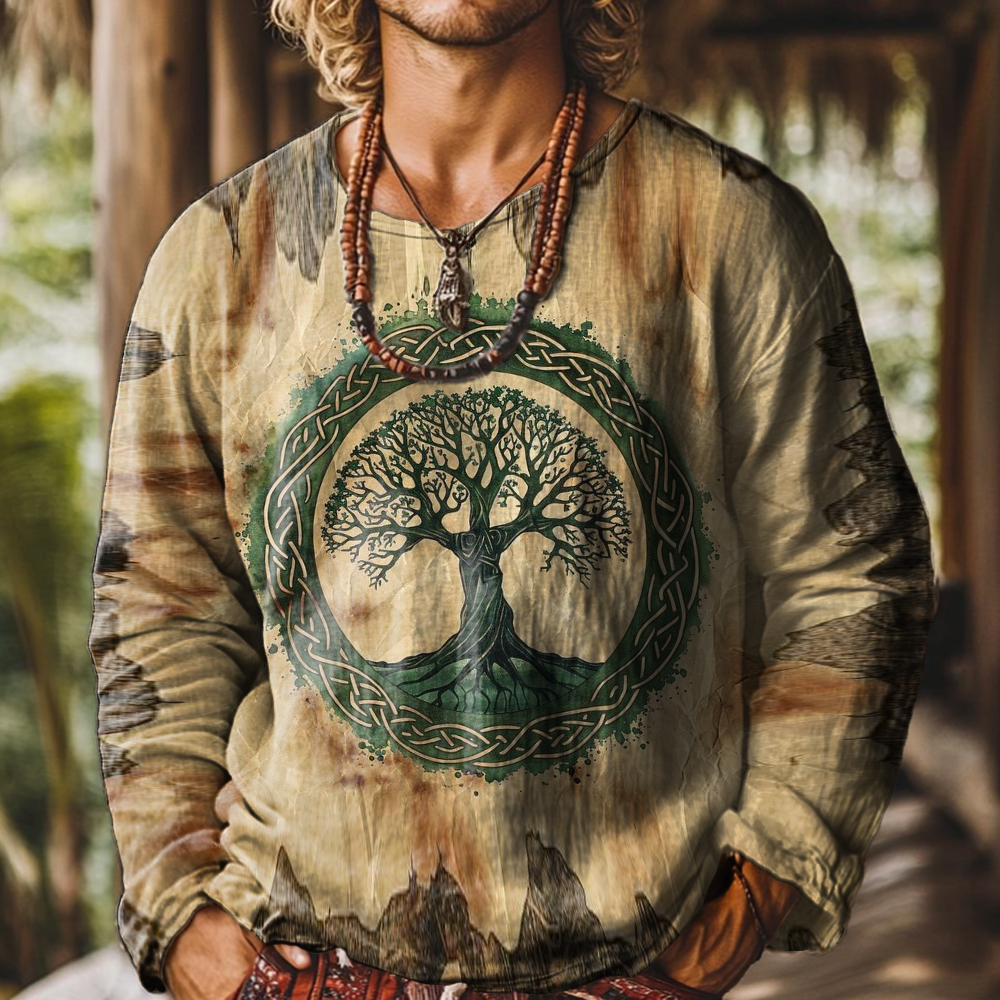 Men's Art Painting Tree of Life Vintage Print Round Neck Long Sleeve