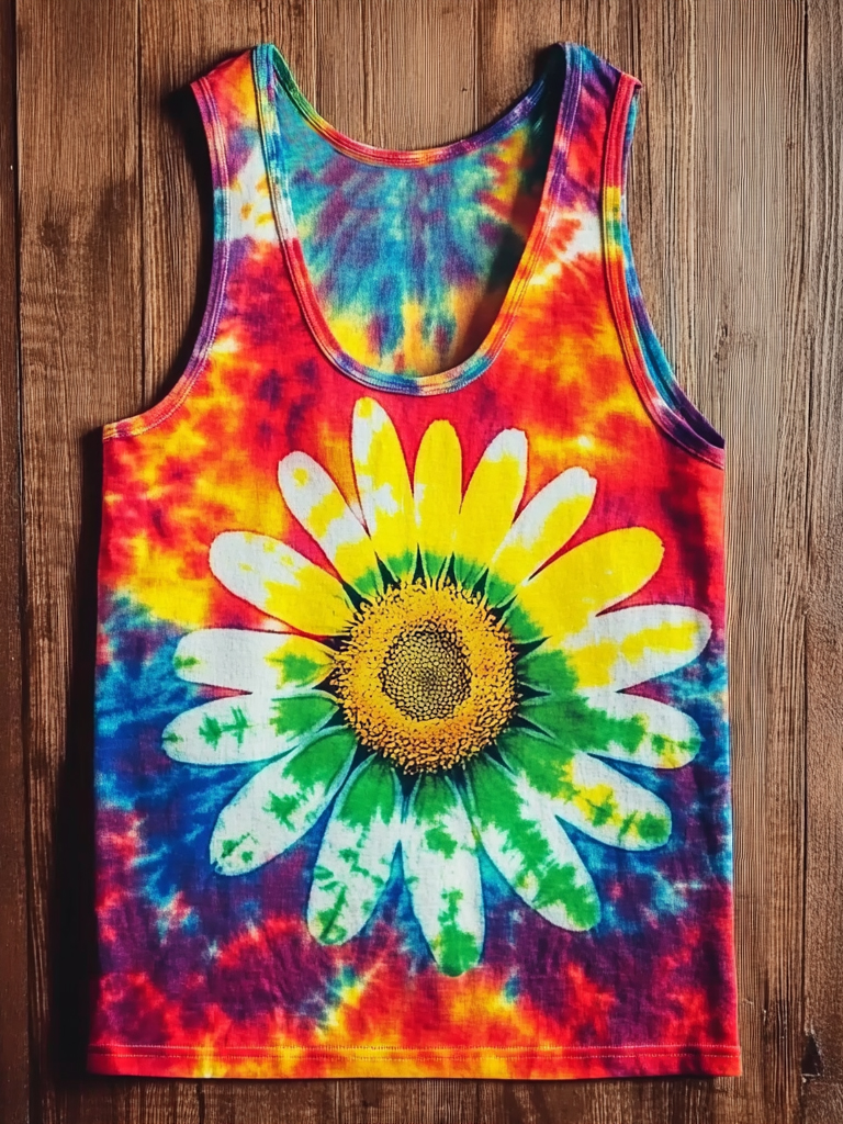 Unisex Tie Dye Daisy Art Graphic Print Crew Neck Cotton Tank Top