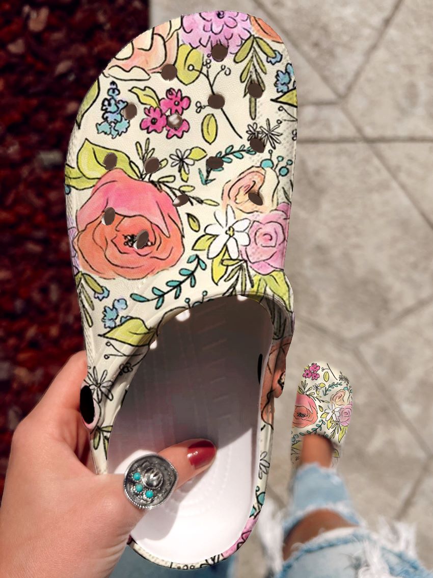 Floral Pattern Art Print Casual Hole Shoes