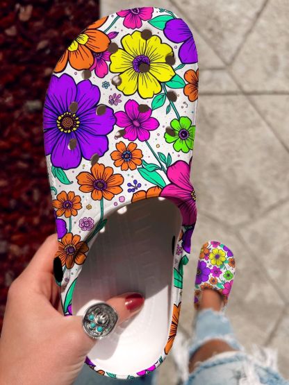 Floral Pattern Art Print Casual Hole Shoes