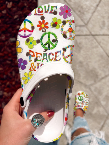 Hippie Peace Love Floral Art Print Casual Shoes & Slippers