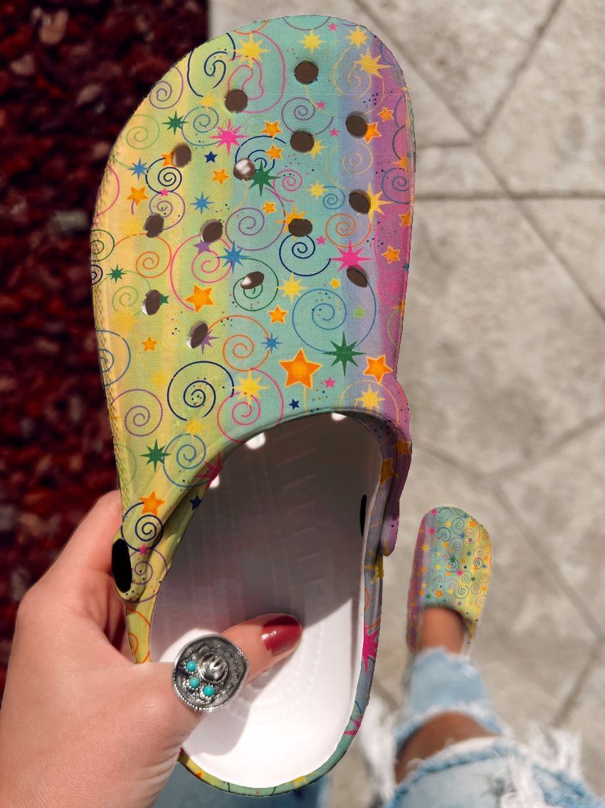 Multi-color striped star pattern art print casual hole shoes