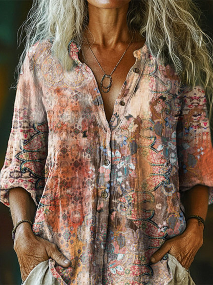 Women's Art Painting Hippie Vintage Floral Print Long Sleeve Shirt