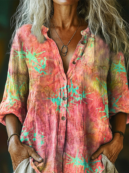 Women's Art Painting Hippie Vintage Floral Print Long Sleeve Shirt