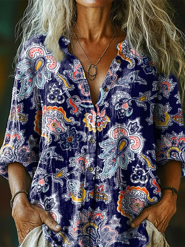 Women's Art Painting Hippie Vintage Floral Print Long Sleeve Shirt