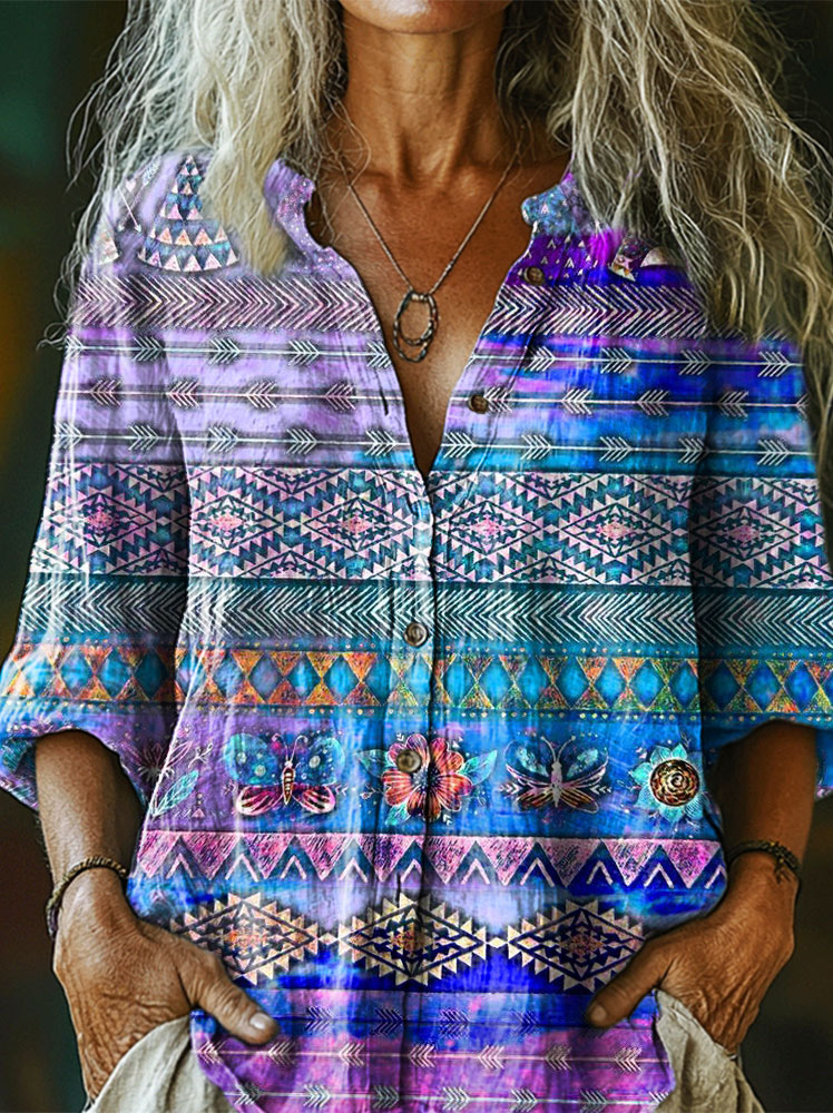 Women's Art Painting Hippie Vintage Print Long Sleeve Shirt