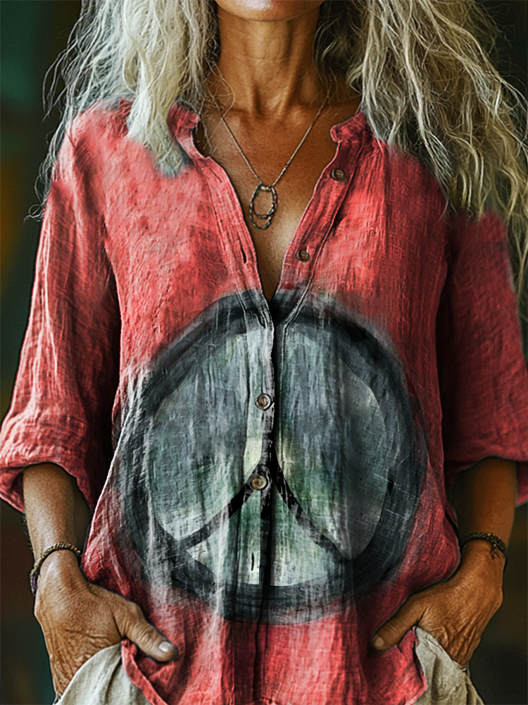 Women's Hippie Art Print Casual Cotton Linen Shirt