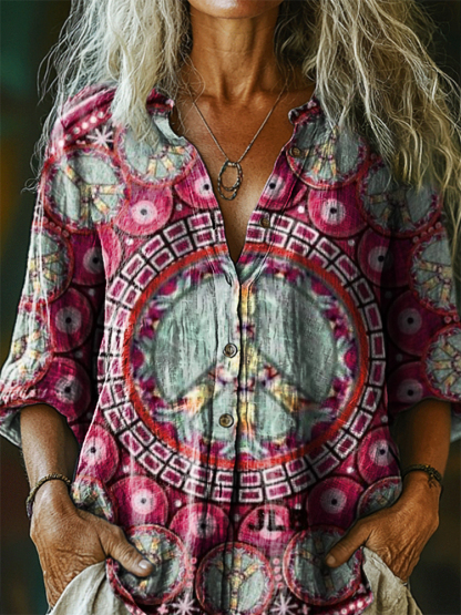 Women's Hippie Art Print Casual Cotton Linen Shirt