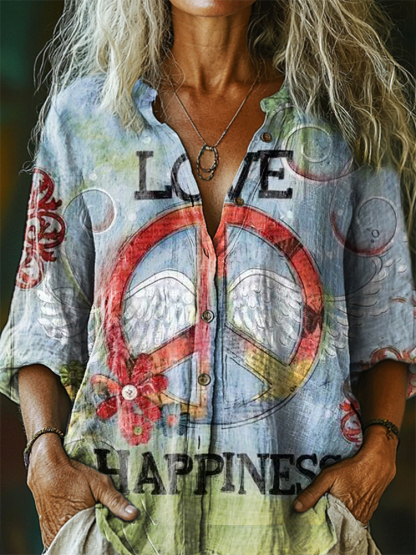 Women's Hippie Pattern Art Print Casual Cotton Linen Shirt