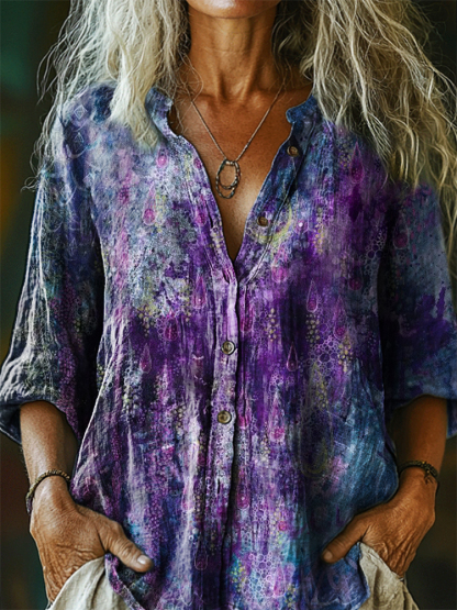 Women's Vintage Bohemian Pattern Art Print Casual Cotton Linen Shirt