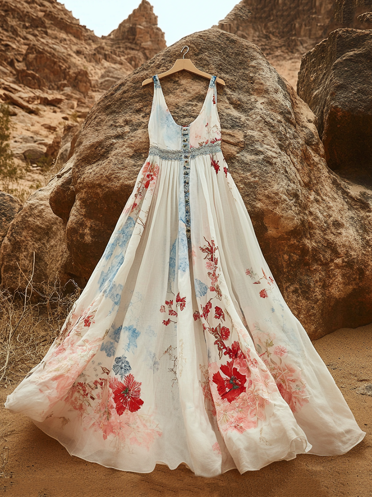 Women's Vintage Tie-dye Floral Sleeveless Dress
