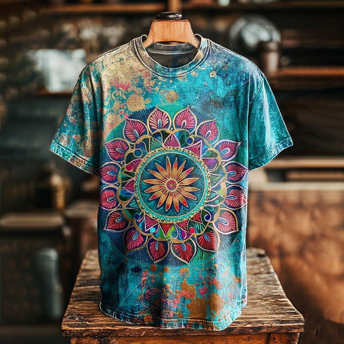 Unisex Mandala Embellished Pattern Art Print Round Neck Short Sleeve