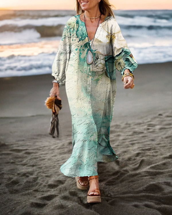 Vintage Floral Long Sleeve Cardigan Maxi Dress