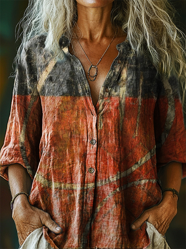 Women's Vintage Bohemian Floral Art Print Casual Cotton Linen Shirt