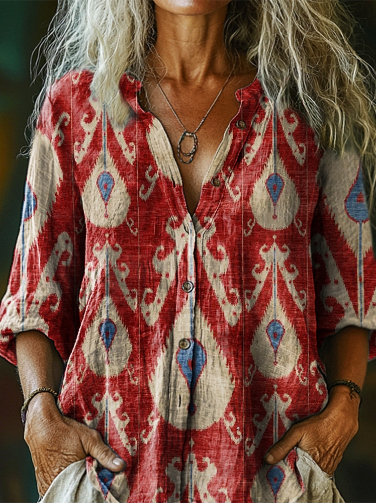 Women's Vintage Ethnic Art Print Comfortable Long Sleeve Cotton Shirt