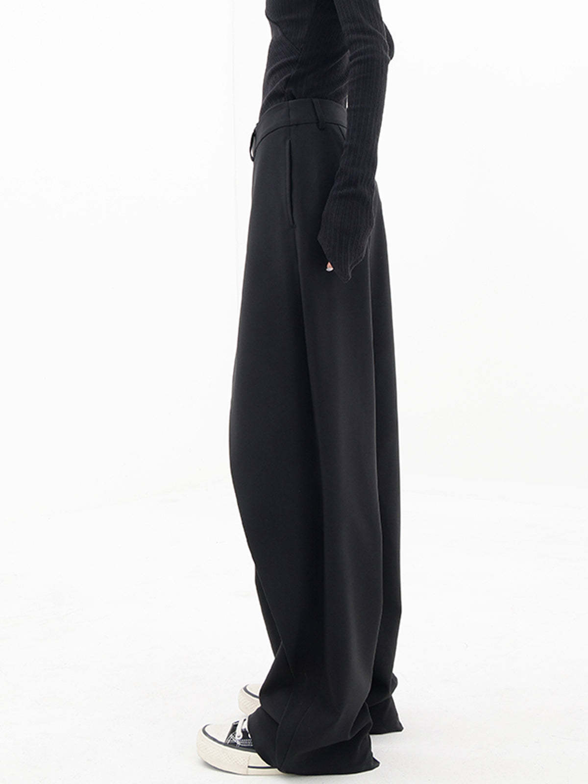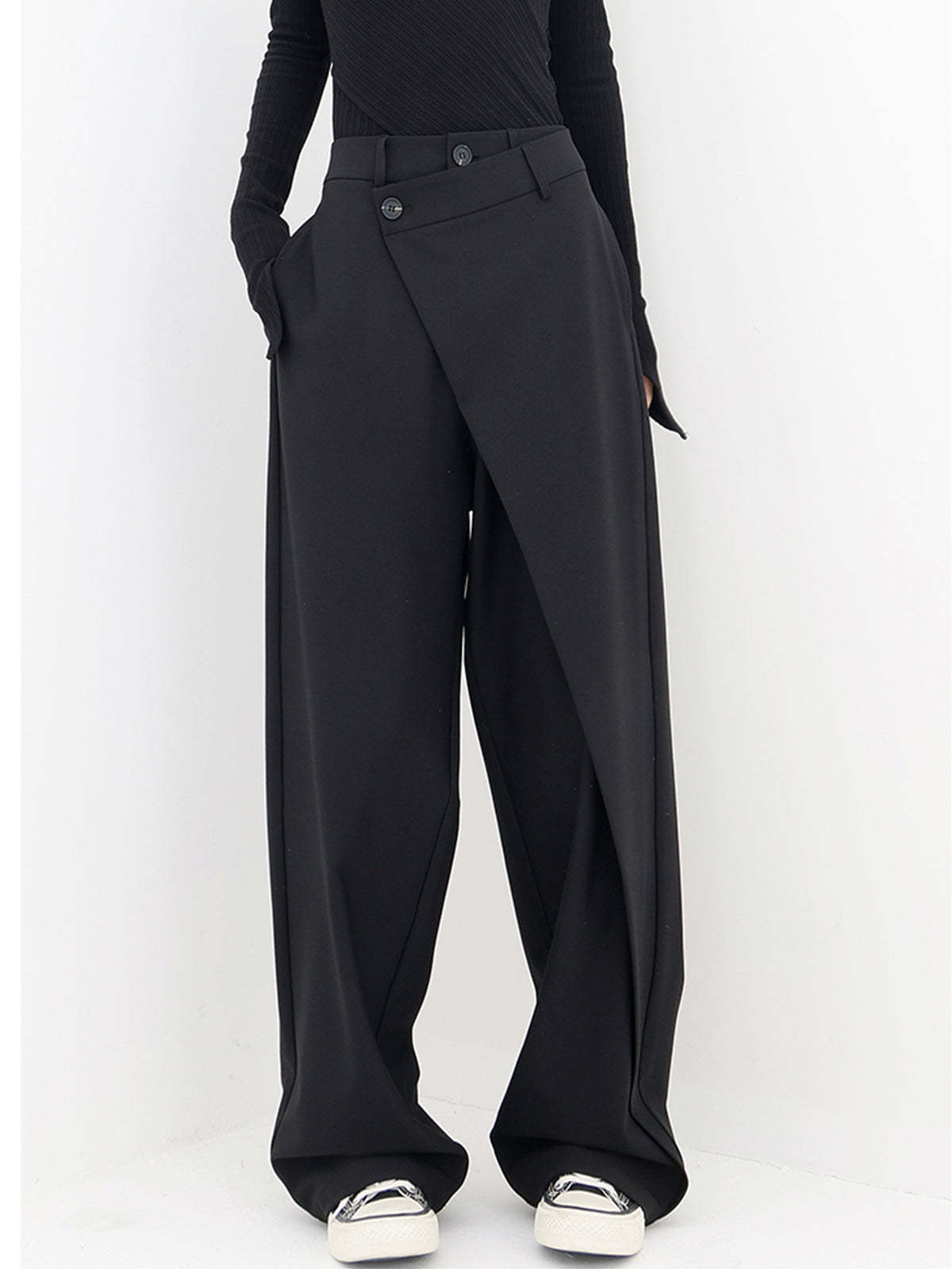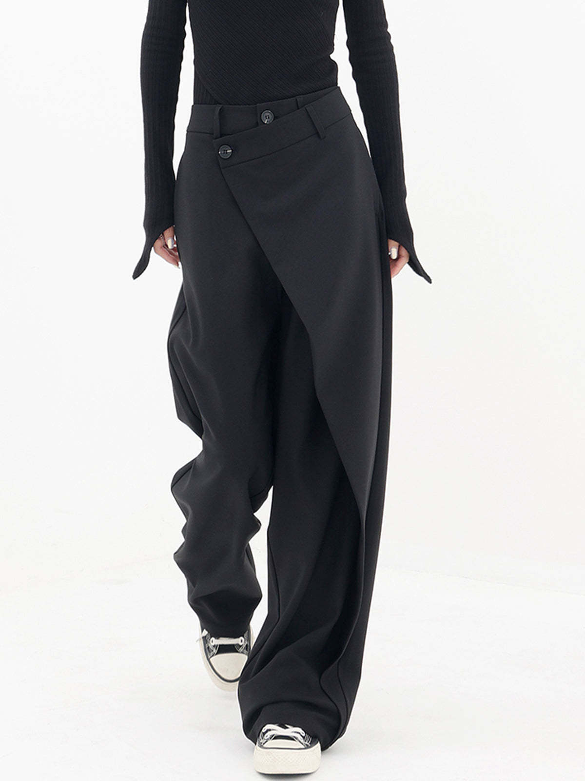 Asymmetrical Layer Button Baggy Wide Leg Pants