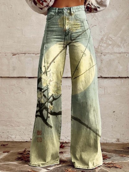 Casual Japanese Plum Blossom Loose Wide Leg Pants