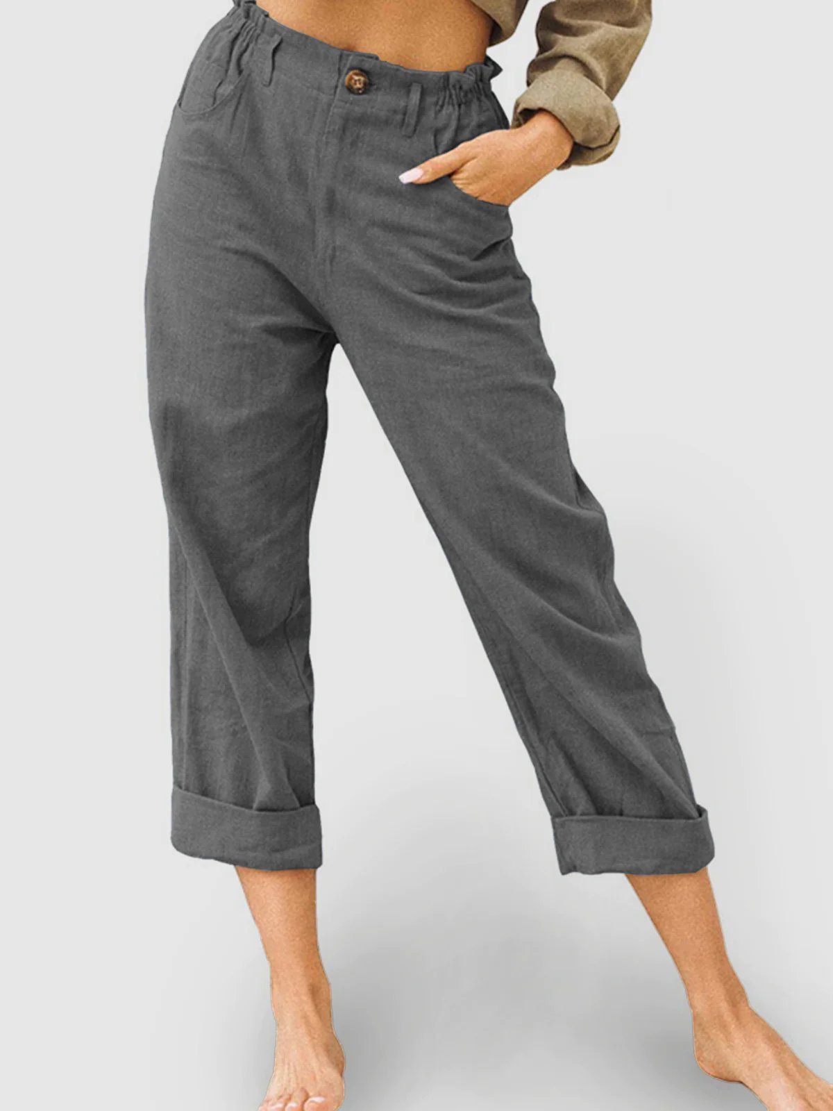 This is a slacks made of high quality eco-friendly natural cotton and linen fabrics, available in a wide range of colors for you to choose from. Wearing it will not only give you a comfortable wearing experience, but also enhance your elegant temperament.