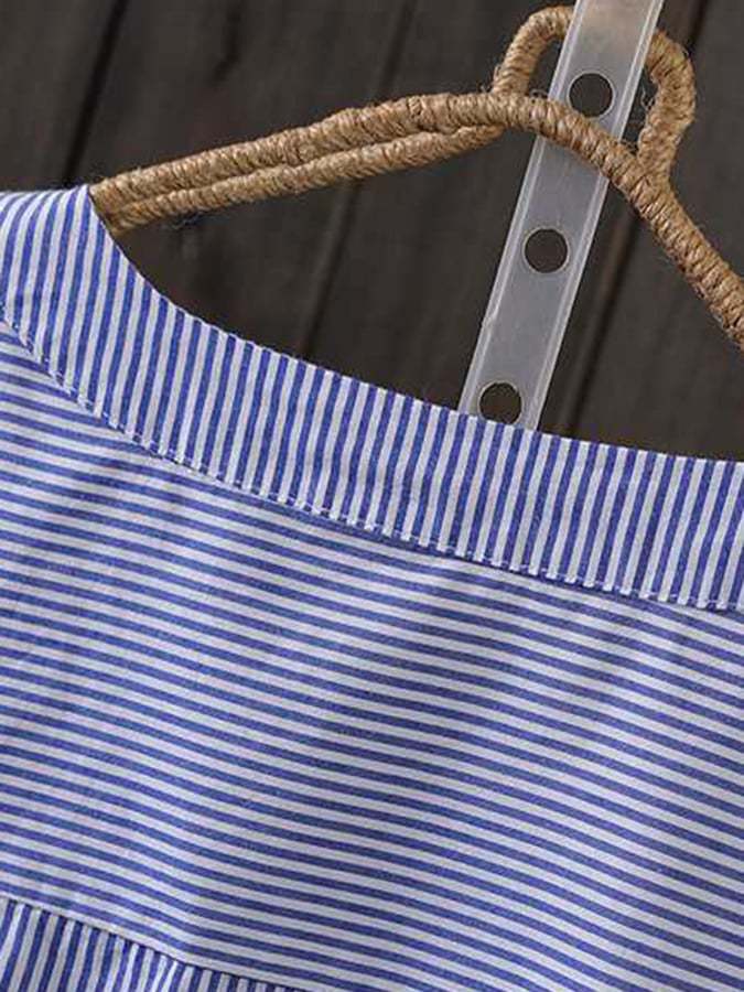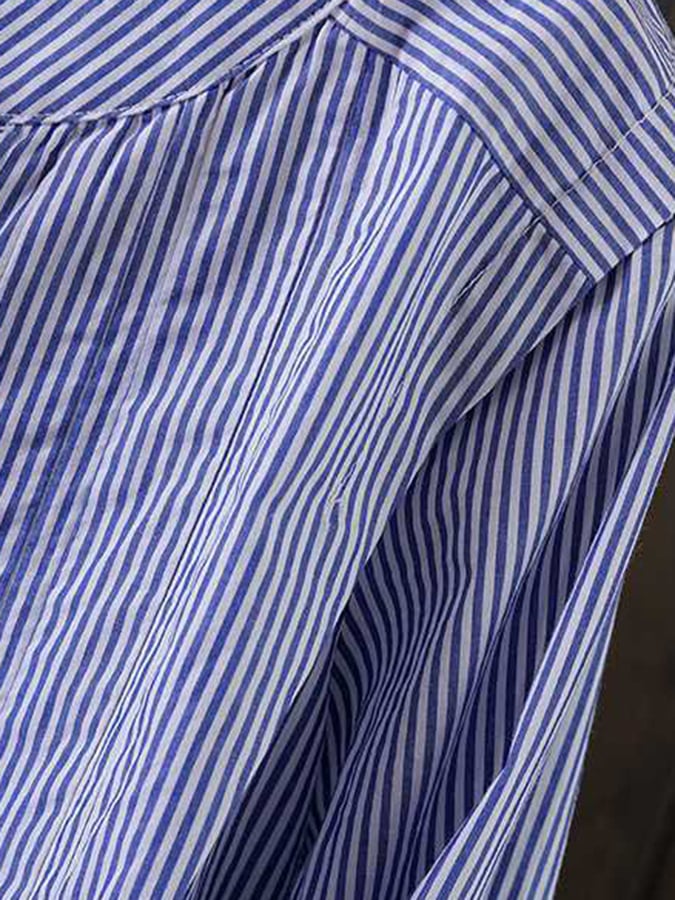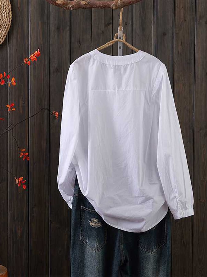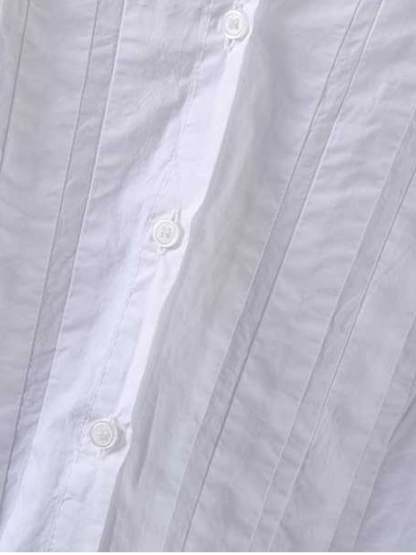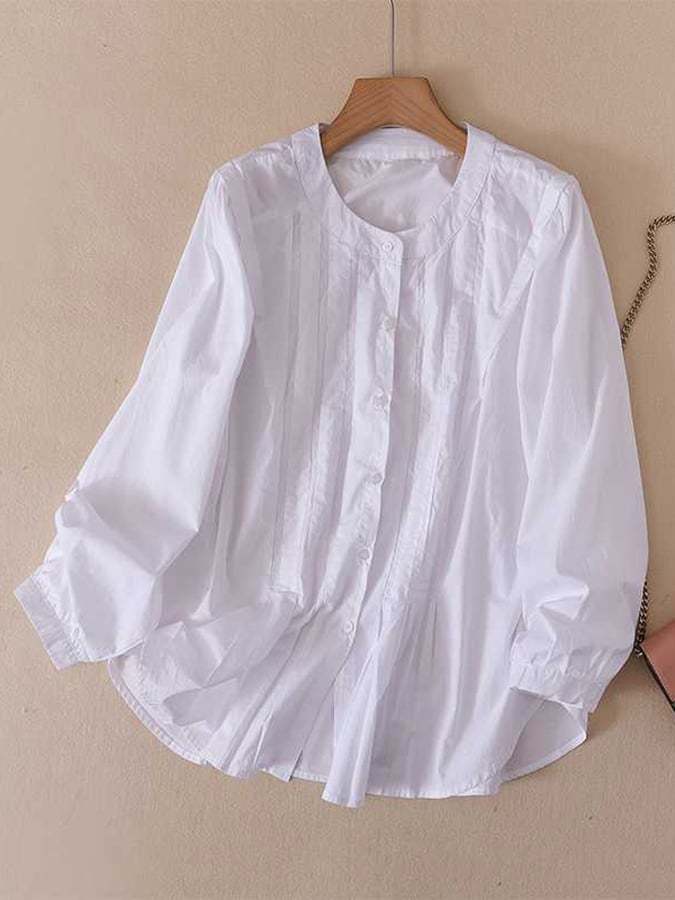 Cotton Round Neck Pleated Long-Sleeved Shirt