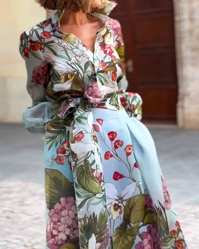 Elegant Printed Shirt & Skirt Two-Piece Set