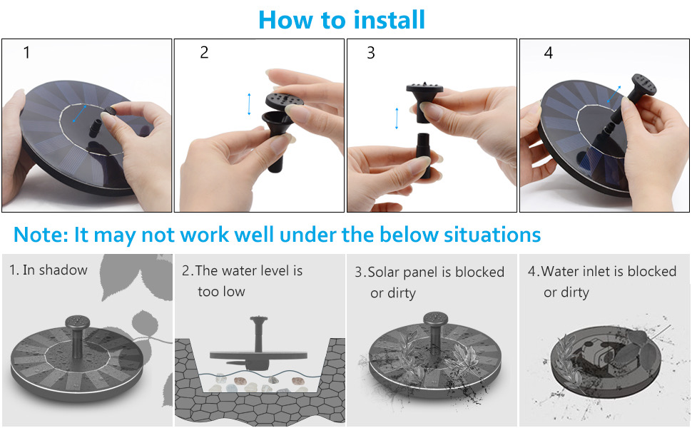 solar birdbath fountain is made of highly efficient solar panels and a new brushless pump.