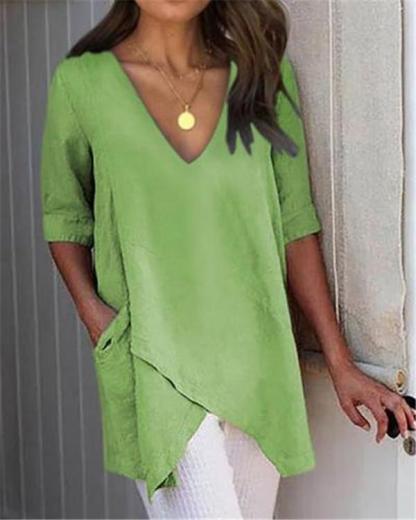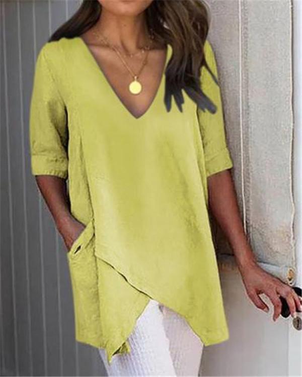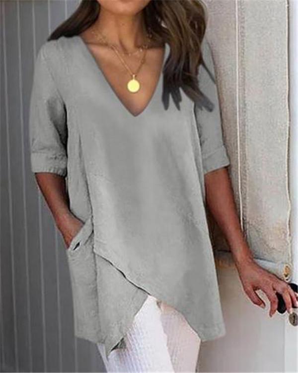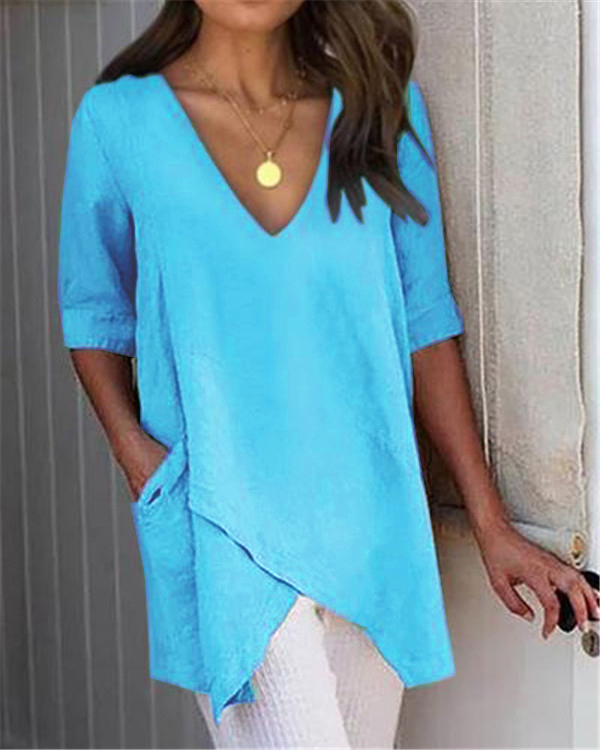 Half Sleeve Irregular Plus Size Blouses Asymmetrical Hem Shirts