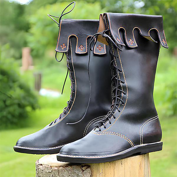 The Men's Lace Up Medieval Retro Boots offer a perfect blend of historical style and modern functionality. Inspired by classic medieval footwear, these boots feature a rugged, lace-up design that provides both a secure fit and an authentic, old-world aesthetic. Made from high-quality leather or durable materials, they are built to withstand wear while offering long-lasting comfort. The tall silhouette adds a bold, knightly look, while the sturdy sole ensures excellent grip and stability, making them ideal for outdoor activities or casual wear. These boots are perfect for those looking to add a unique, retro-inspired edge to their wardrobe with a nod to medieval times.