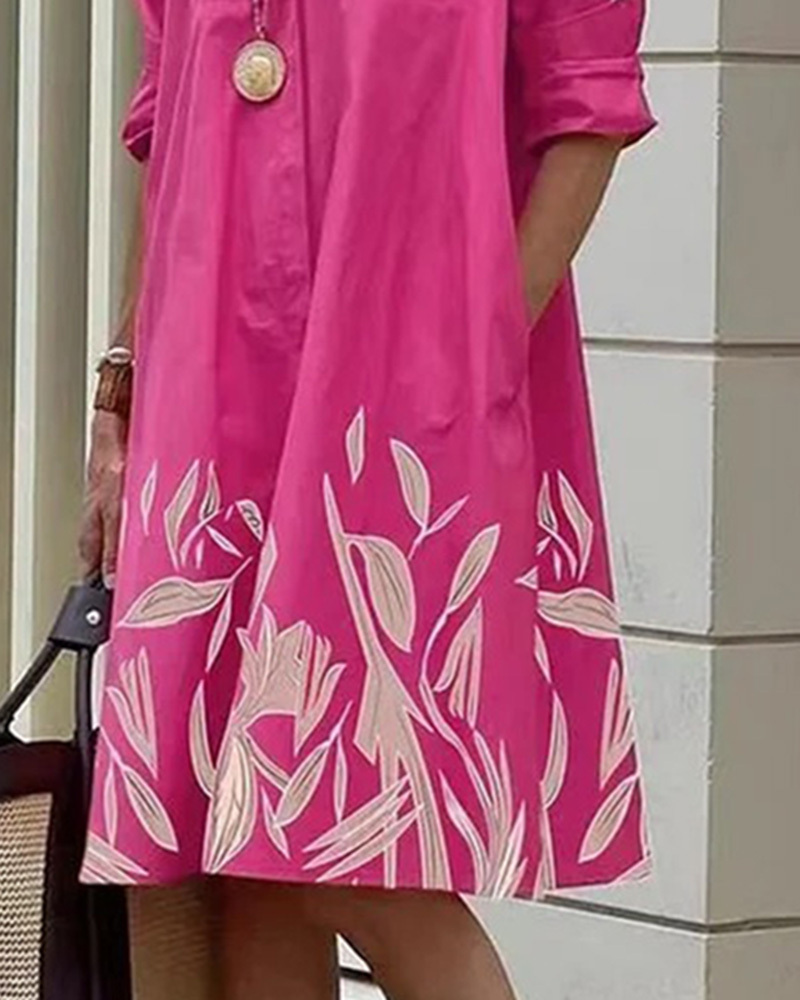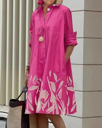 Printed Mid-Length Long Sleeve Shirt Dress for Women