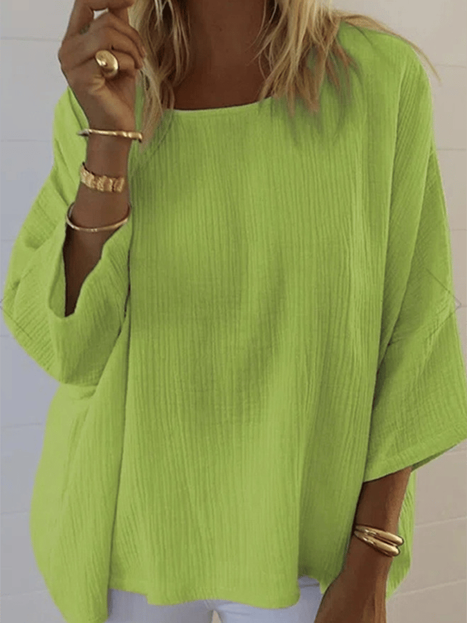 Women's Casual Loose Round Neck Solid Color Simple Long Sleeve Shirt