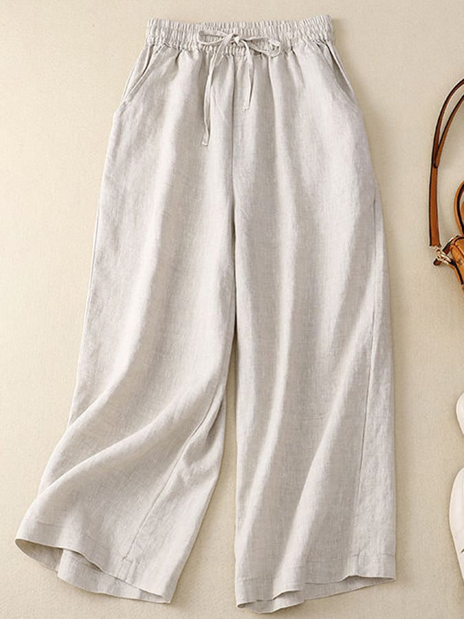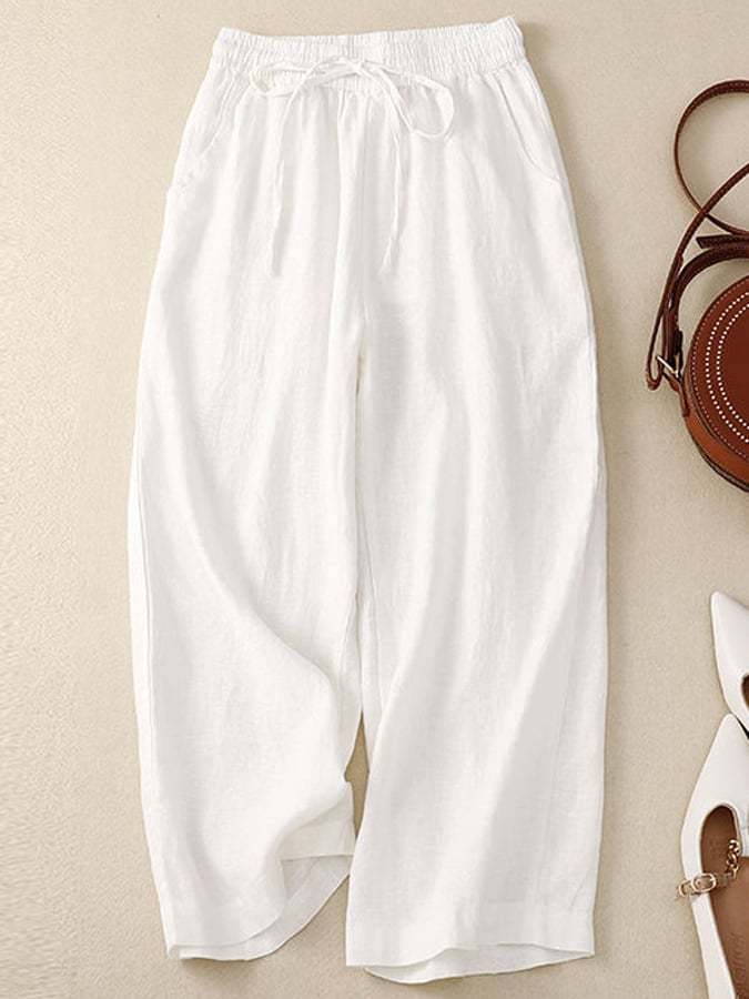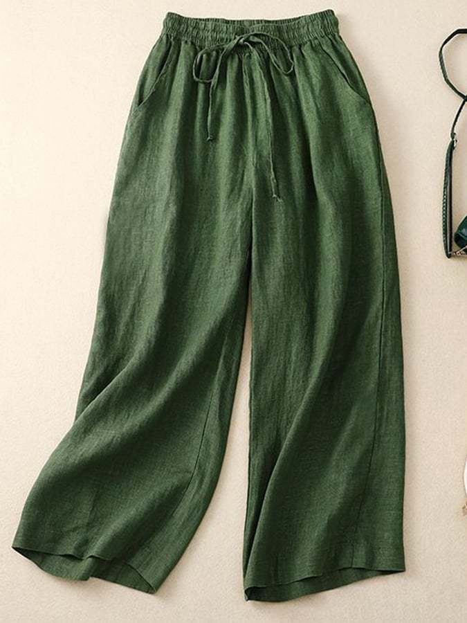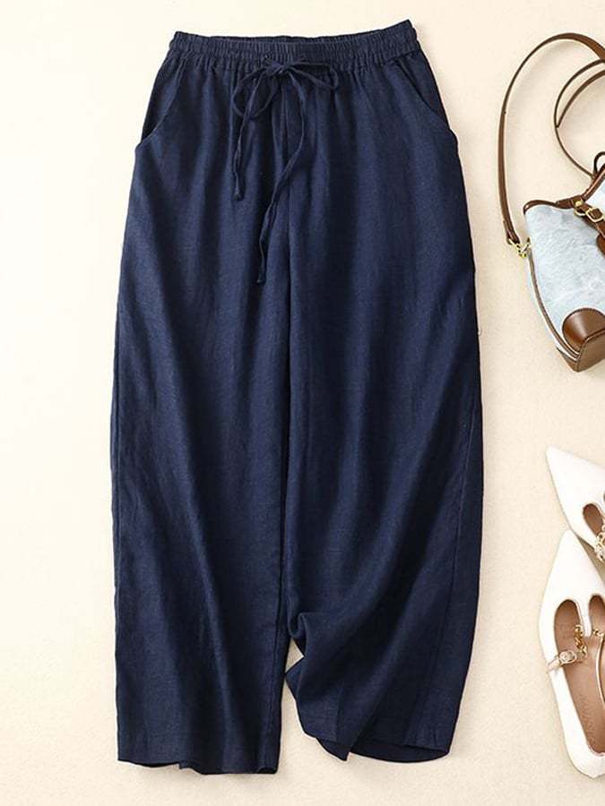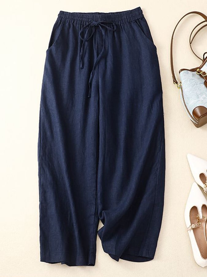 Women's Cotton And Linen Loose Solid Color Casual Wide Leg Pants
