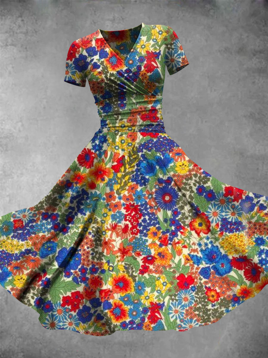 Women's Cute Casual Flower Art Print Maxi Dress