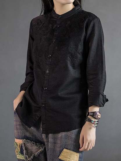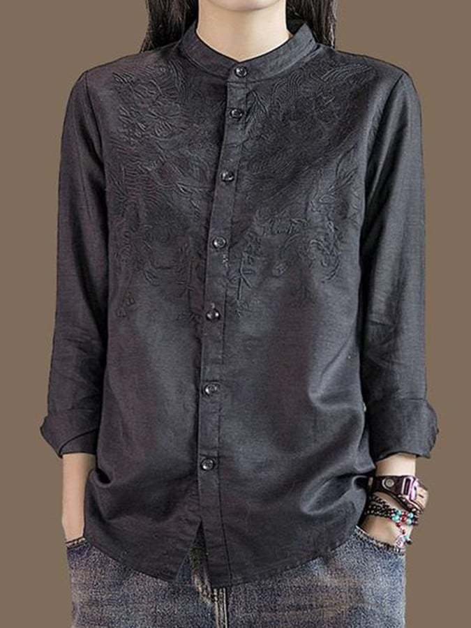 Women's Embroidered Standing Collar Literary Vintage Cotton Shirt