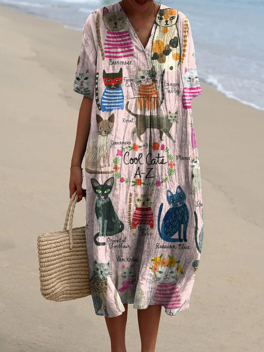 Women's Funny Cool Cat Geometry Art Print Flowy Dress